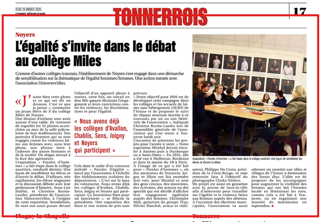 1. Un premier temps d’exposition de la galerie de portraits photos PAROLES D’HOMMES dans la structure ou dans un espace commun à plusieurs structures participantes. Accrochage et décrochage de l’exposition se font en coordination avec UniesVers’Elles. L’exposition de 76 portraits d’hommes accompagnés de leurs phrases de conviction, sensibilisent et questionnent les participant-e-s et les invitent, à leur tour, à prendre la parole en s’engageant dans PAROLES D’ÉGALITÉ.